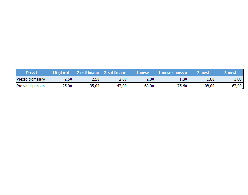 Prezzo giornaliero (decrescente). Si veda immagine.